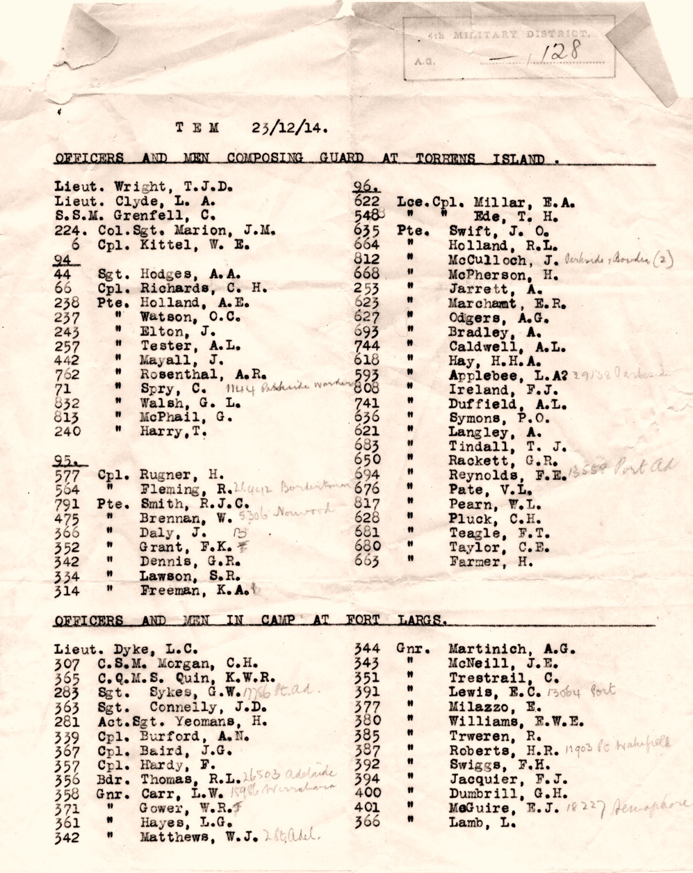 Officers and Men composing Guard at Torrens Islands 23/12/14 SASA /128