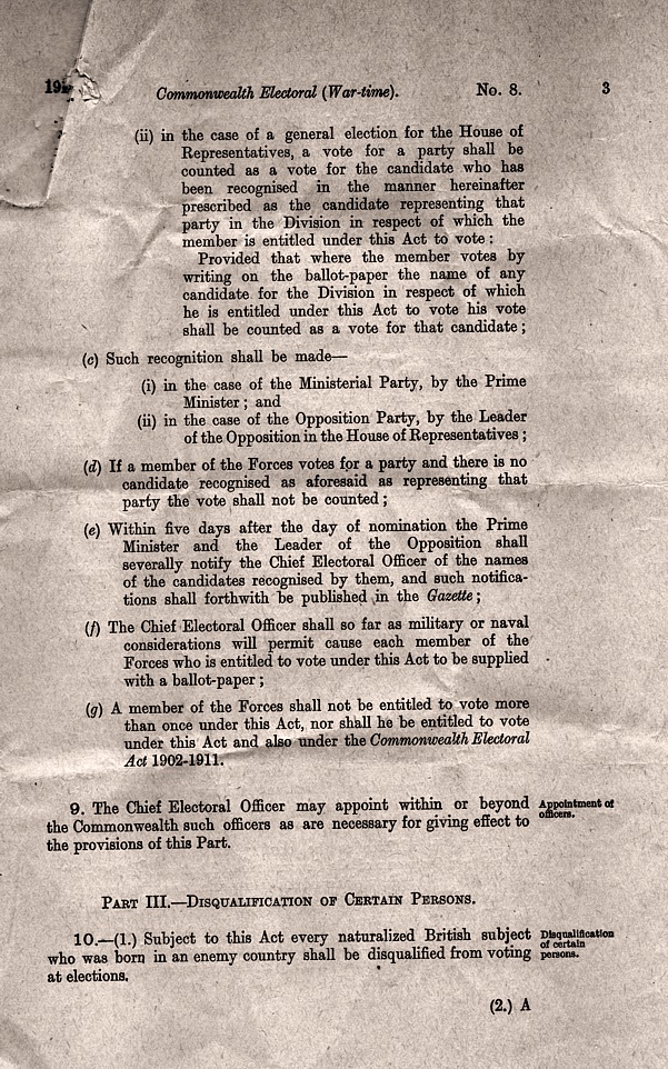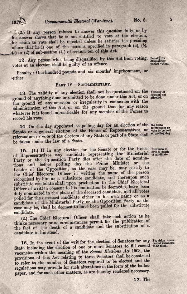 Commonwealth Electoral Act [War-Time] No.8 of 1917